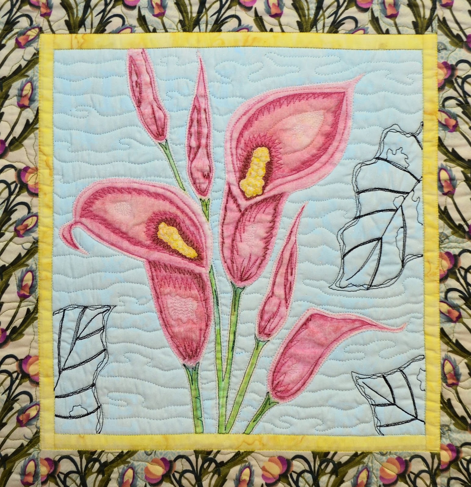 I was able to play with shading, fabric collage, inktense pencils, and free-motion stitched cartoon designs in negative space (see Figures 1-4). The finished work was called Happiness is...Making a Table-runner for Suzanne (see Figure 5). This is actually my second Happiness work, the first being Happiness is...Making a Quilt for Suzanne several years ago...another Suzanne...putting together blocks made by her mother (see Figure 6 & 7). Next years exchange will be a wall-hanging, anything goes. I can't wait as I will be making it for my friend, Inez, who will be 99 in 2015. Hmmm....wheels are turning...